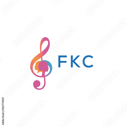 © MDENAMUL, Naklejka premium FKC “Creative music logo with human silhouettes and treble clef in gradient colors, FKC Later Logo, modern artistic design isolated on white background”
