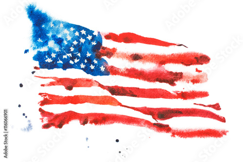 © undrey, Naklejka premium Flag of America, hand drawn watercolor illustration.