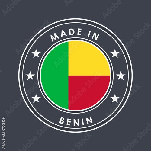 © simeonvd, Fototapeta premium Flag of Benin. Round Label with Country Name for Unique National Goods. Vector