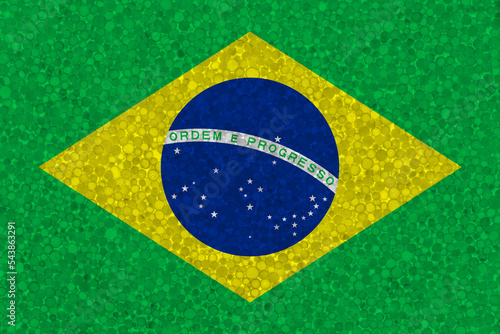 Fototapeta premium Flag of Brazil on styrofoam texture. national flag painted on the surface of plastic foam