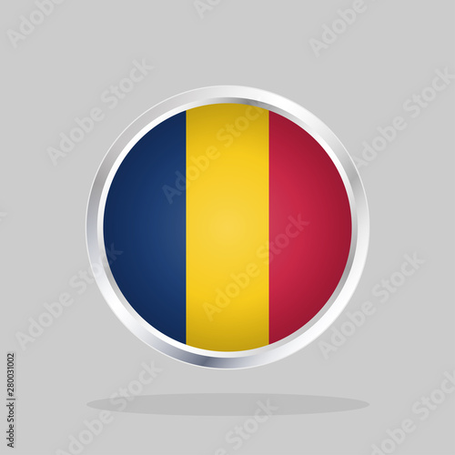 © Andramin, Fototapeta premium Flag of Chad, Glossy Round Button With Metallic Frame