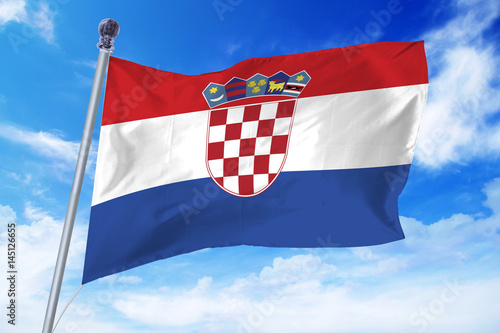 © marinadatsenko, Naklejka premium Flag of Croatia developing against a clear blue sky