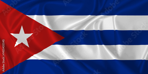 © Alexprint, Naklejka premium Flag of Cuba waving in the wind on silk texture