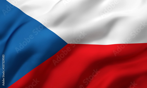 Naklejka premium Flag of Czech Republic blowing in the wind. Full page Czech flying flag. 3D...