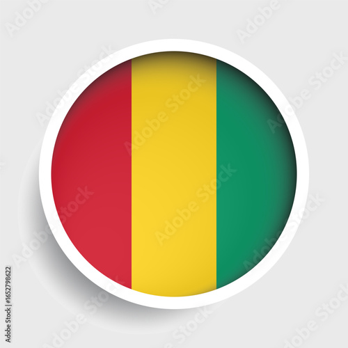 Fototapeta premium Flag of Guinea, round icon with shadow, national symbol