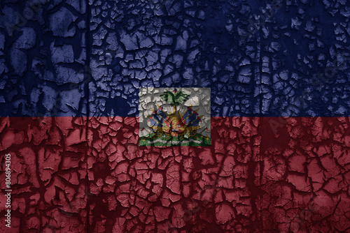 Fototapeta premium flag of haiti on a old grunge metal rusty cracked wall background