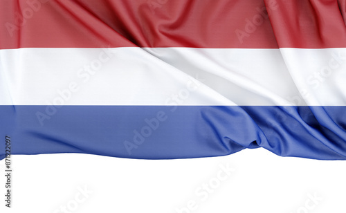 © kirill_makarov, Fototapeta premium Flag of Netherlands on white background with copy space below. 3D rendering