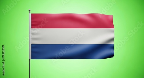 © Margarita Ratatosk, Fototapeta premium Flag of Netherlands wavering on a pole on a green screen. National symbol for patriotic celebrations, independence Day, news background.