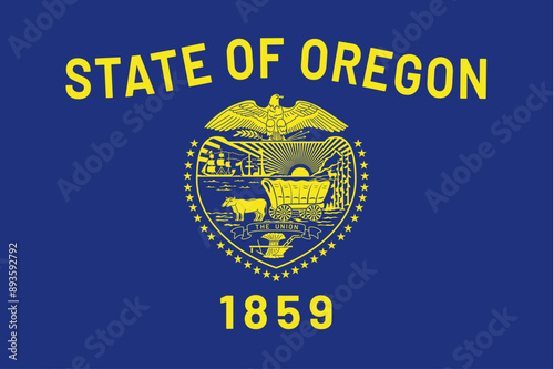 © Sunflower, Naklejka premium Flag of Oregon, symbol of USA federal state. Full frame federal flag of Oregon features field of blue with the escutcheon from the state seal. American patriotic element detailed vector illustration