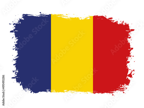 Fototapeta premium flag of Romania on brush painted grunge banner - vector illustration