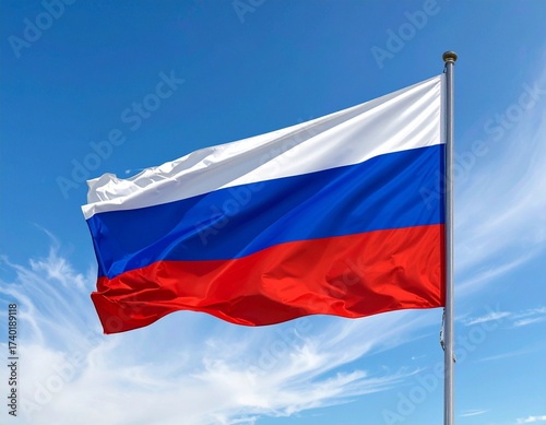 © Shoaib, Fototapeta premium Flag of Russia Waving in a Clear Blue Sky