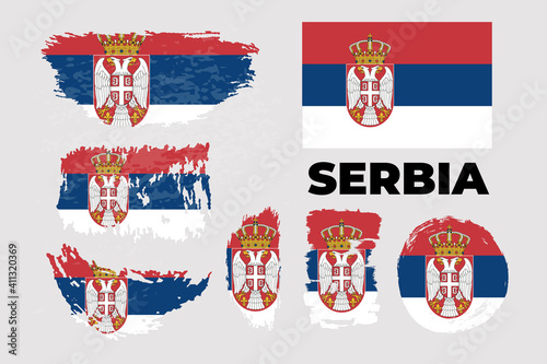 Naklejka premium Flag of Serbia. Vector stock grunge illustration set