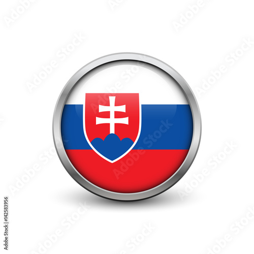 Obraz premium Flag of Slovakia, button with metal frame and shadow