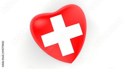Obraz premium flag of Switzerland in heart on white background, 3d rendering