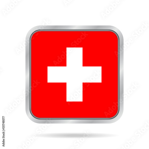 Fototapeta premium Flag of Switzerland. Metallic gray square button.