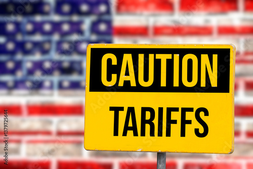 © studio v-zwoelf, Fototapeta premium Flag of USA and sign with reference to customs duties in America
