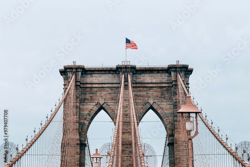 Fototapeta premium Flag on Brooklyn Bridge