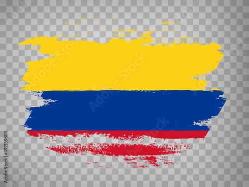 Fototapeta premium Flag Republic of Colombia, brush stroke background. Flag of Colombia on tranparent backrgound for your web site design, app, UI. Stock vector. EPS10.