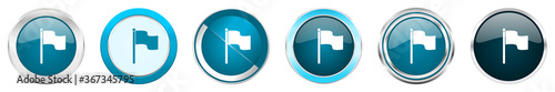 Fototapeta premium Flag silver metallic chrome border icons in 6 options, set of web blue round buttons isolated on white background