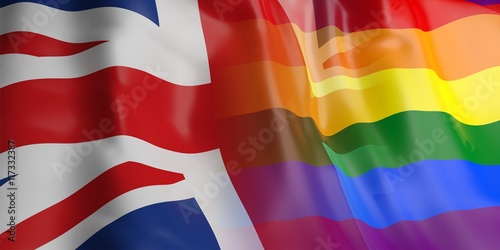 © Rawf8, Fototapeta premium Flaga Wielkiej Brytanii i dumy gejowskiej. Ilustracja 3D