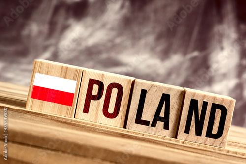 Fototapeta premium Flagge von Polen und das Wort Poland