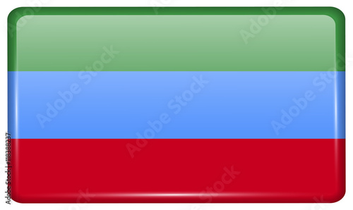 Naklejka premium Flags Dagestan in the form of a magnet on refrigerator with reflections...