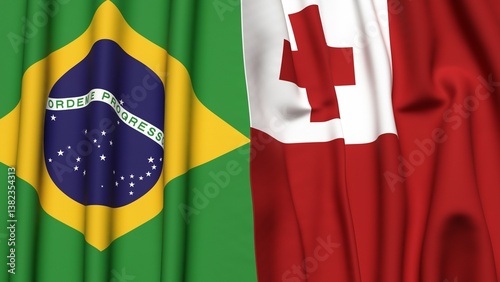 © Vutuk, Fototapeta premium Flags of BRAZIL and TONGA with realistic cloth texture