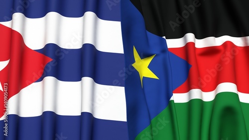 © Vutuk, Fototapeta premium Flags of CUBA and SOUTH SUDAN with realistic cloth texture