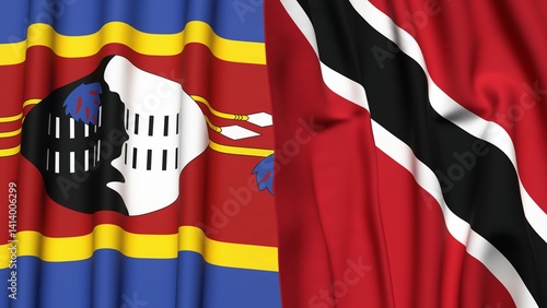 © Vutuk, Fototapeta premium Flags of Eswatini and TRINIDAD with realistic cloth texture