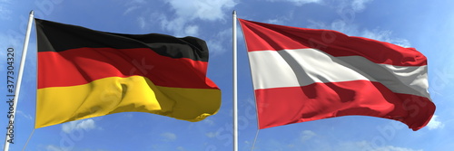 Naklejka premium Flags of Germany and Austria on flagpoles. 3d rendering