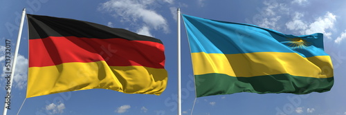 © Alexey Novikov, Naklejka premium Flags of Germany and Rwanda on flagpoles. 3d rendering