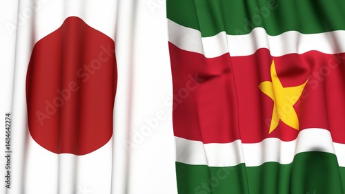 © Vutuk, Obraz premium Flags of JAPAN and SURINAME with realistic cloth texture