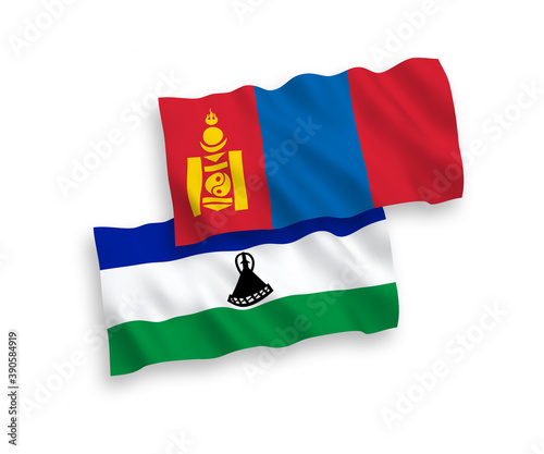 Fototapeta premium Flags of Lesotho and Mongolia on a white background