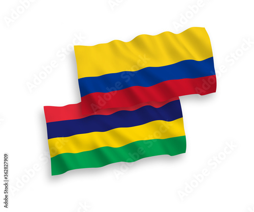 Obraz premium Flags of Mauritius and Colombia on a white background