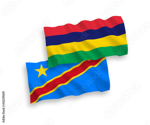 Obraz premium Flags of Mauritius and Democratic Republic of the Congo on a white background