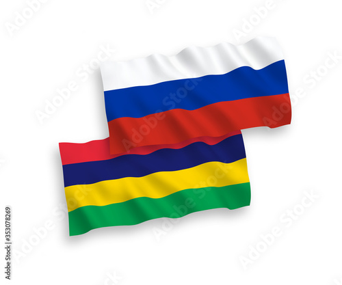 Fototapeta premium Flags of Mauritius and Russia on a white background