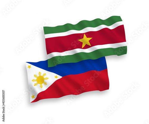 Fototapeta premium Flags of Republic of Suriname and Philippines on a white background