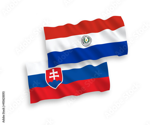 Fototapeta premium Flags of Slovakia and Paraguay on a white background