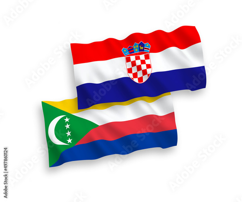Fototapeta premium Flags of Union of the Comoros and Croatia on a white background