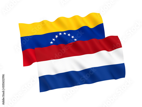 Fototapeta premium Flags of Venezuela and Netherlands on a white background