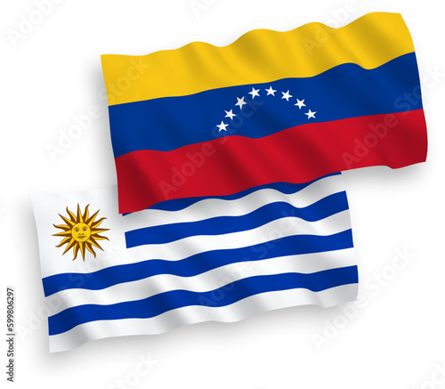 Naklejka premium Flags of Venezuela and Oriental Republic of Uruguay on a white background