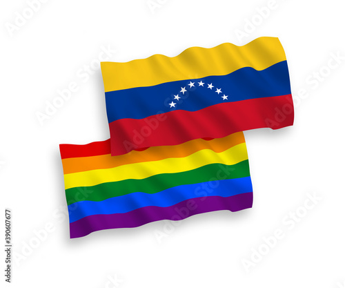 Obraz premium Flags of Venezuela and Rainbow gay pride on a white background