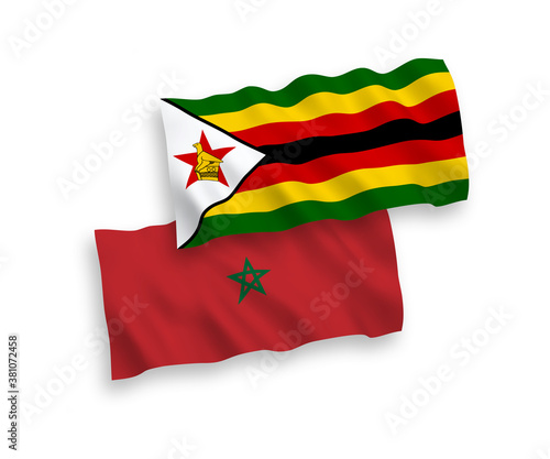 Naklejka premium Flags of Zimbabwe and Morocco on a white background
