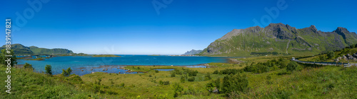 © Harald Tedesco, Fototapeta premium Flakstadbruene Panorama auf den Lofoten