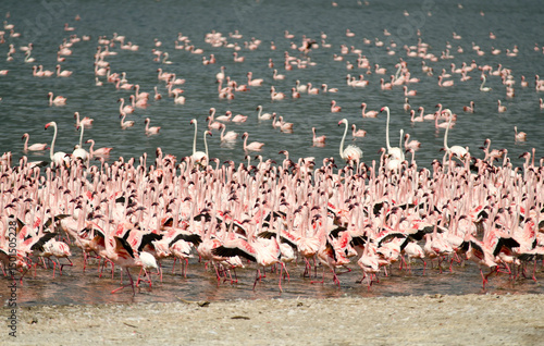 Fototapeta premium Flamant nain, phoenicopterus minor, Lesser Flamingo, colonie, parc national...