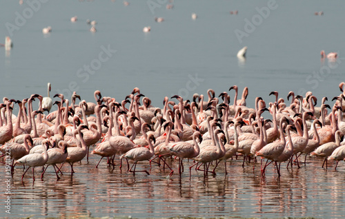 Naklejka premium Flamant nain, phoenicopterus minor, Lesser Flamingo, Parc national de Nakuru, Kenya