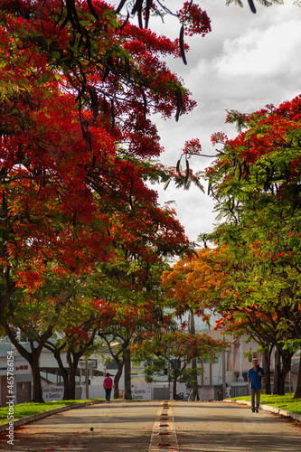 © Angela, Naklejka premium Flamboyants floridos na Avenida Goiás Norte. (Delonix regia)