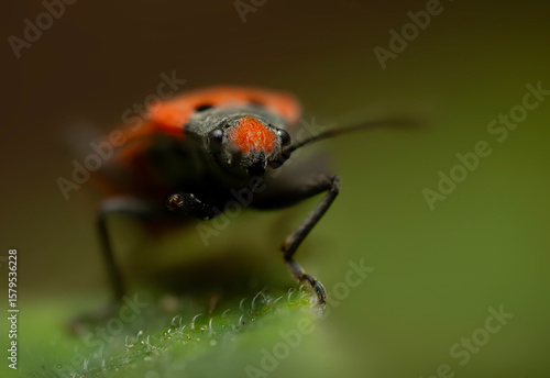 © serkanmutan, Naklejka premium Flame bedbug. Macro photo. Nature background.