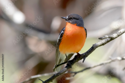 © Andrew, Fototapeta premium Flame robin - Petroica phoenicea - adult male perched