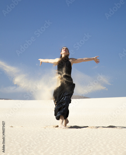 © Tamara Kulikova, Obraz premium flamenco in the dunes